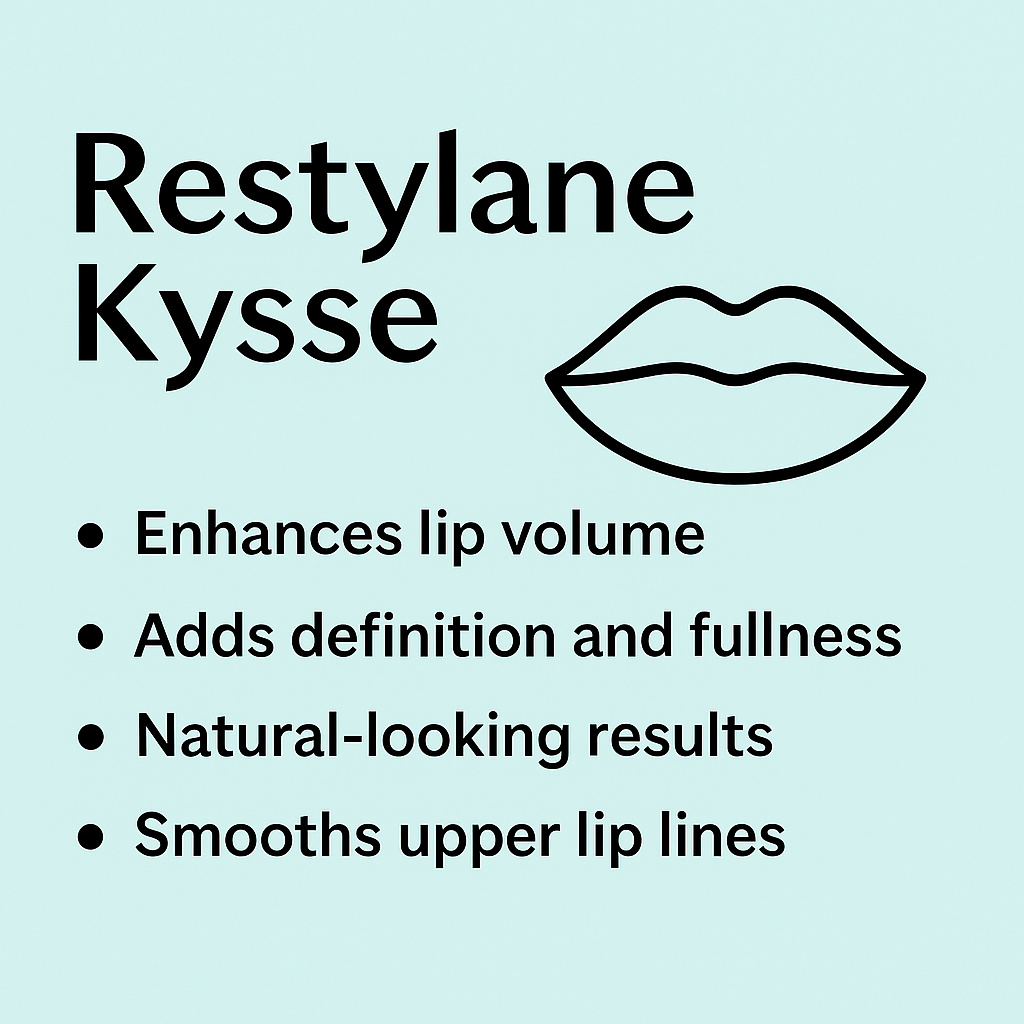 Enhance your lips with Restylane Kysse, a hyaluronic acid-based filler designed for natural-looking volume, softness, and definition. This FDA-approved formula integrates with your tissue for a flexible, kissable feel while smoothing fine lines around the mouth. Ideal for subtle enhancement or full rejuvenation.